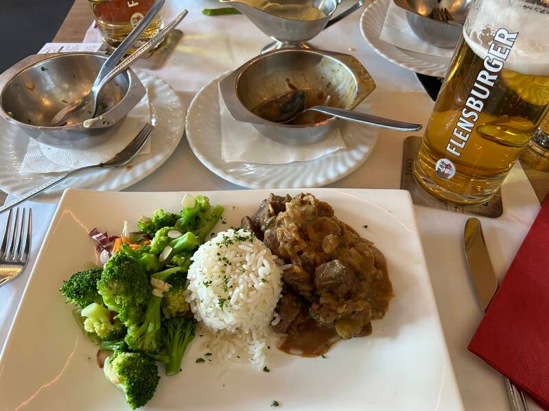 Daarna gaat het verder richting Hamburg, ook daar hebben we nauwelijks vertraging, ook al is de snelweg daar één grote bouwwerf. Eens Hamburg gepasseerd is het niet zo ver meer naar Tarp, dus stoppen we nog een keertje om de beentjes te strekken.