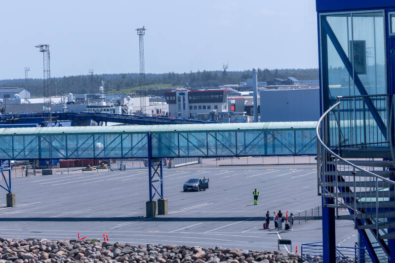 De parking waarop we moesten aanschuiven stond al helemaal vol. Het was voor ons de eerste keer dat we de ferry met de auto namen, maar eigenlijk stelt het helemaal niks voor. Er staan genoeg medewerkers van ColorLine paraat om het op het schip rijden zo vlotjes mogelijk te laten verlopen.