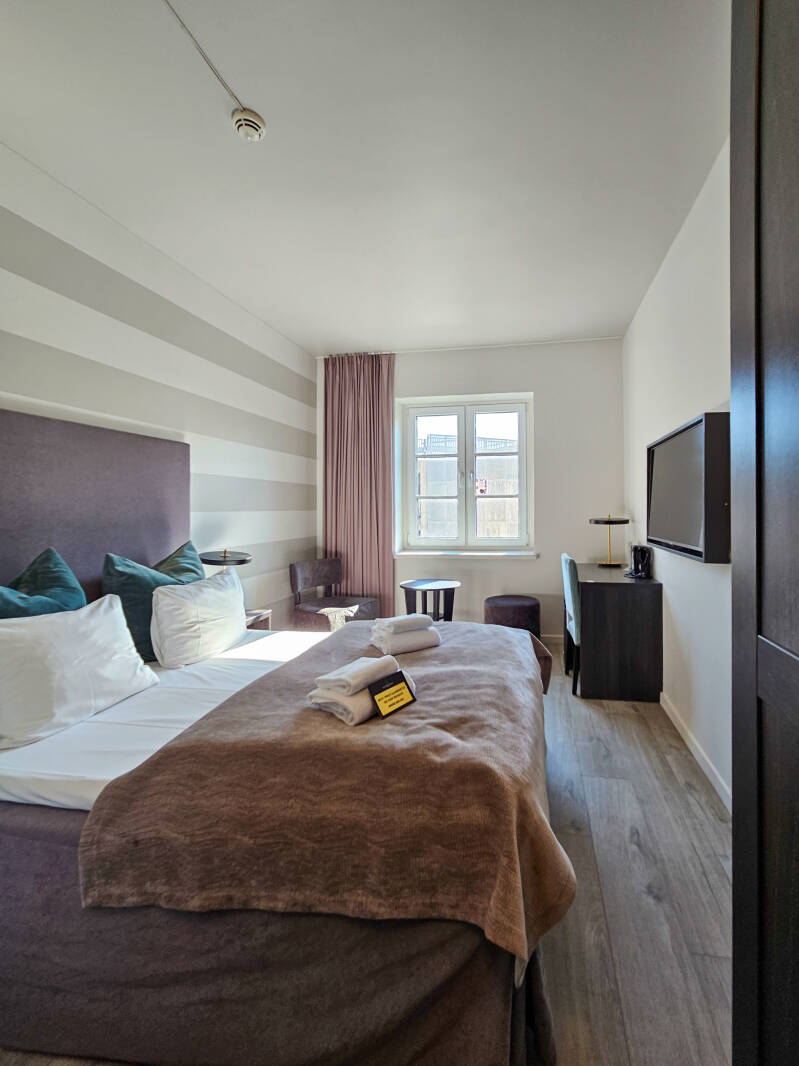 Van Larvik naar onze bestemming in Tonsberg is het maar een klein uurtje rijden. We verblijven in het Wilhelsem house. Dat is een hotel met een automatische receptie. Je krijgt de dag dat je aankomt een code doorgestuurd via sms en daarmee kan je alle deuren openen.