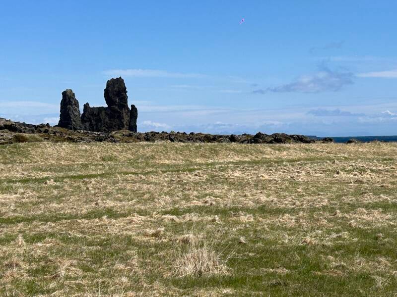 Vanaf de vuurtoren heb je ook een heel goed zicht op de Lóndrangar rots. Dat is een lava rots die hoog uit de oceaan oprijst.