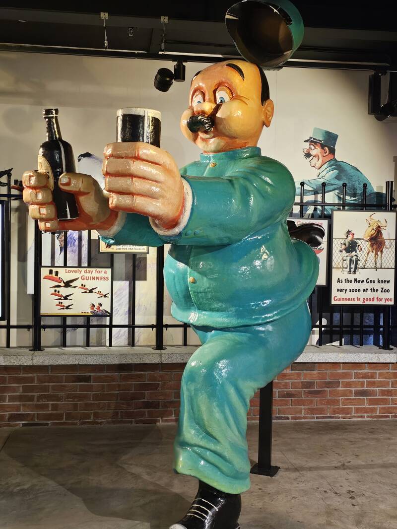 Na de tasting komen we terecht bij de afdeling waar de reclamecampagnes van Guinness tentoongesteld worden. En daar zaten in de loop der jaren wel een paar leuke dingen tussen.