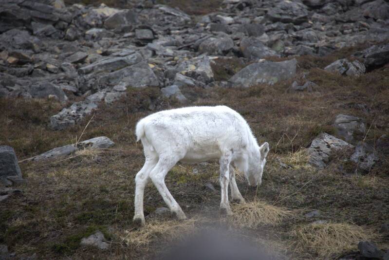 Een luxe autocar brengt ons in drie kwartiertjes tot aan onze bestemming. Onderweg krijgen we een mooi landschap geserveerd, met hier en daar ook rendieren.