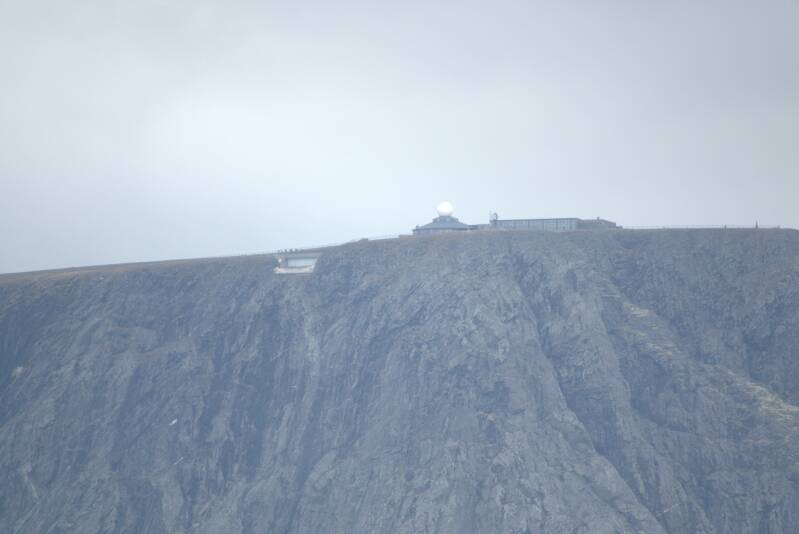 Wanneer we vanochtend wakker werden was de zon weer present. Eigenlijk is ze niet weg geweest. Want we zitten nu boven de poolcirkel en hier gaat de zon simpelweg niet onder. Zo rond een uur of tien wordt er op het schip omgeroepen dat we de Noordkaap voorbijvaren. Deze namiddag rijden we daar met de bus naar toe, nu zien we het vanop zee.