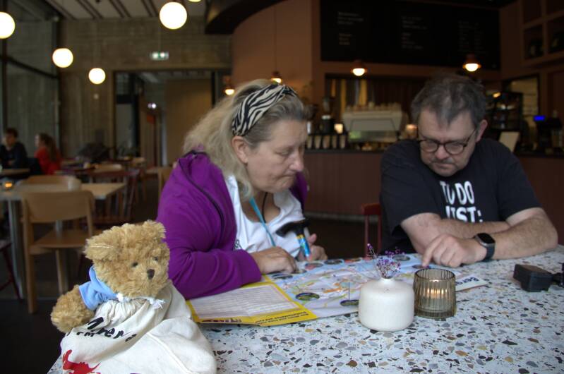 Alvorens we terug op de bus "hoppen" gaan we nog even een kofie drinken in een horeca-zaak vlak naast het park.