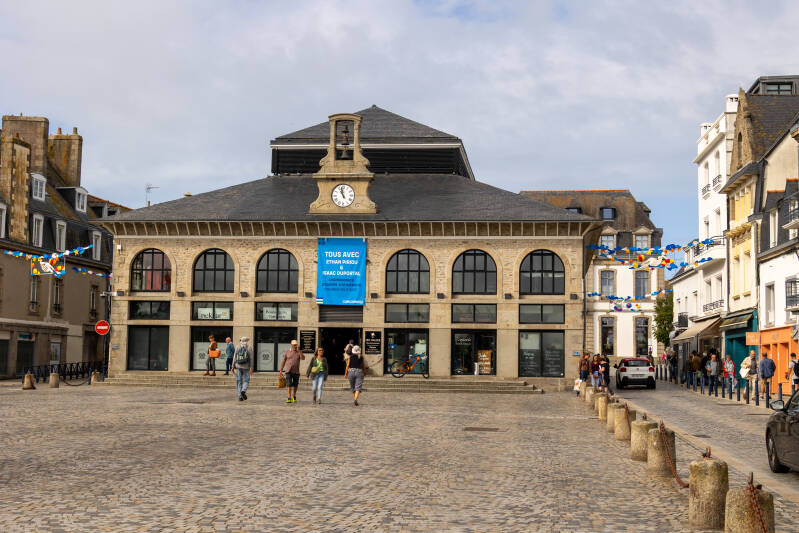 We beginnen met een bezoek aan een overdekt marktje in de buurt van de haven van Concarneau.