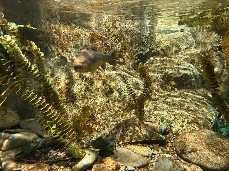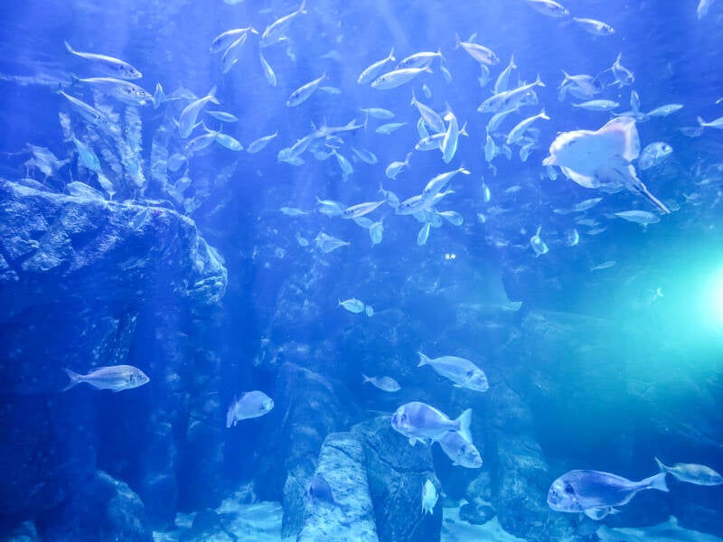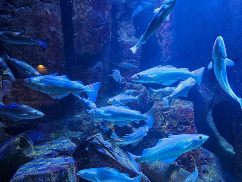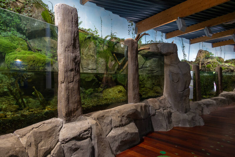 Het eerste deel van het traject bevat aquaria met zoetwatervissen. Het valt ook op dat de ramen van aquaria allemaal heel proper zijn.