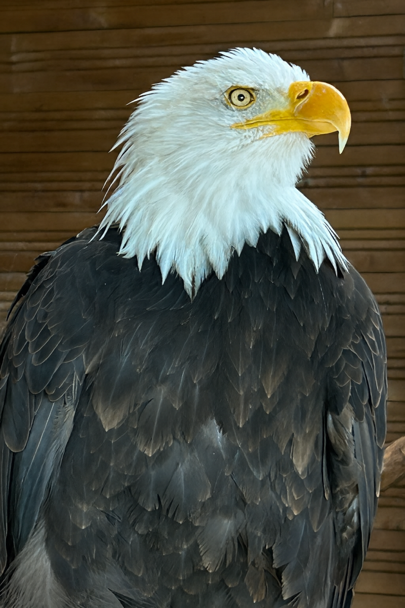 Na de zoetwatervissen zijn de voilieres aan de beurt. Dat begint al meteen met een indrukwekkende Europese zeearend. Een vogel die echt indruk maakt.