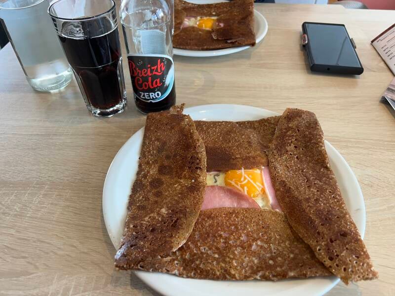 Dan maar verder gezocht. In de buurt van de jachthaven zou er ook eentje moeten zijn die wel open is. Wanneer we daar een twintigtal minuten later aankomen draait de uitbaatster net het bordje "Ouvert" om naar "Fermee". Gelukkig voor ons is de zaak er naast wel open en ligt er tien minuten later de langverwachte crêpe op ons bord.
