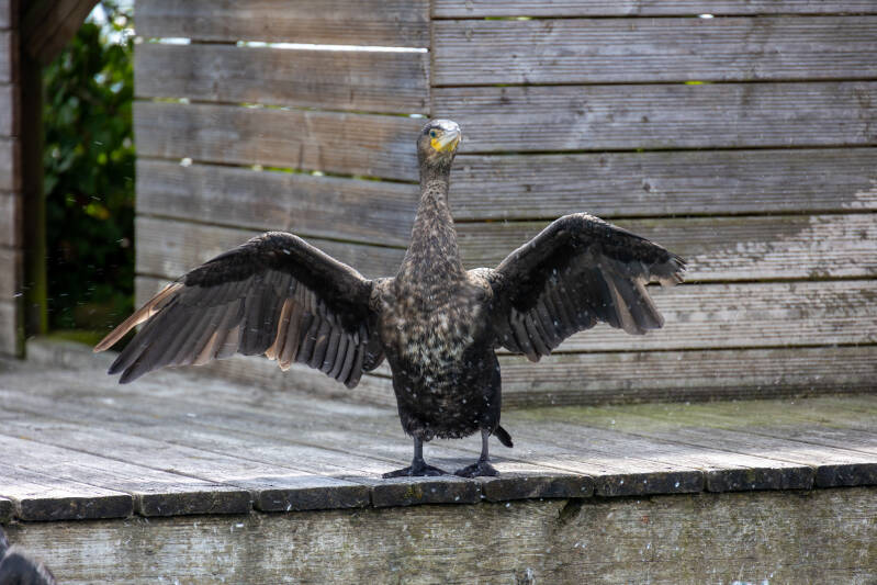 Wanneer een aalscholver een paar visjes binnen heeft gaat hij aan de kant staan en flappert hij met zijn vleugels om de vertering een beetje te bevorderen.