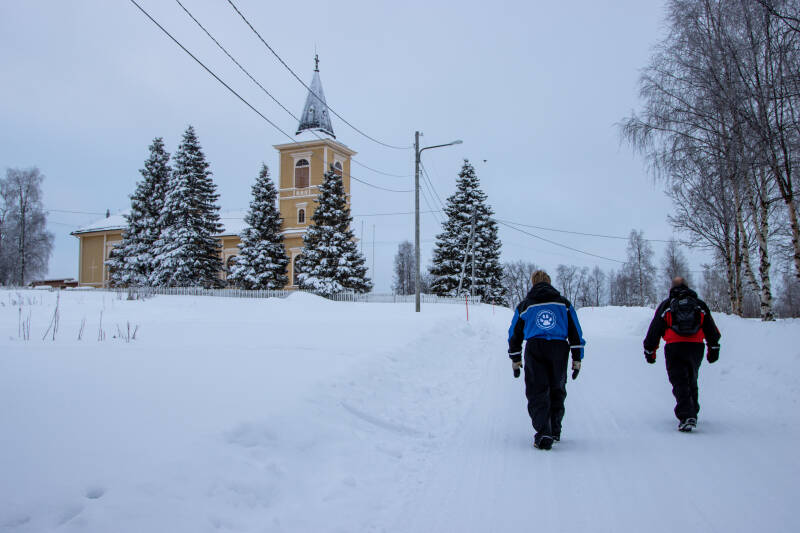 Onze wandelaars hebben ondertussen Muonio onveilig gemaakt en een bezoek gebracht aan de lokale supermarkt. Ook het kerkje werd met een bezoek vereerd, maar verder dan tot aan de voordeur zijn ze niet geraakt wegens deur vast.
