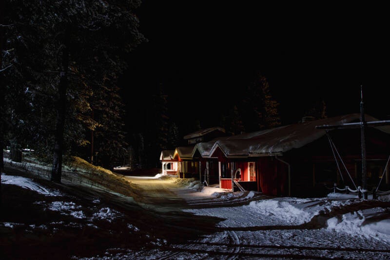 Tegen half 1 zijn we terug in Harriniva en gaan we meteen lunchen. Na een uurtje rust trekken we terug naar buiten, om nog wat meer rond te vliegen en te fotograferen. Annie en Luc laten ons weten dat ze veilig terug gekeerd zijn van hun dagtocht en we besluiten om de dagomzet van de bar nog eens een extra boost te geven. Voor we het doorhebben is het 6 uur, met andere woorden, etenstijd. Er is vandaag veel kans op noorderlicht, dus trekken we na het eten terug naar buiten. Maar helaas is het nog steeds zwaar bewolkt waardoor er niks te zien is. Dat houdt ons echter niet tegen om creatief bezig te zijn met licht. We doen nog een tweede poging om het noorderlicht te zien omstreeks 10 uur, maar ook nu is er nog steeds te veel bewolking.
