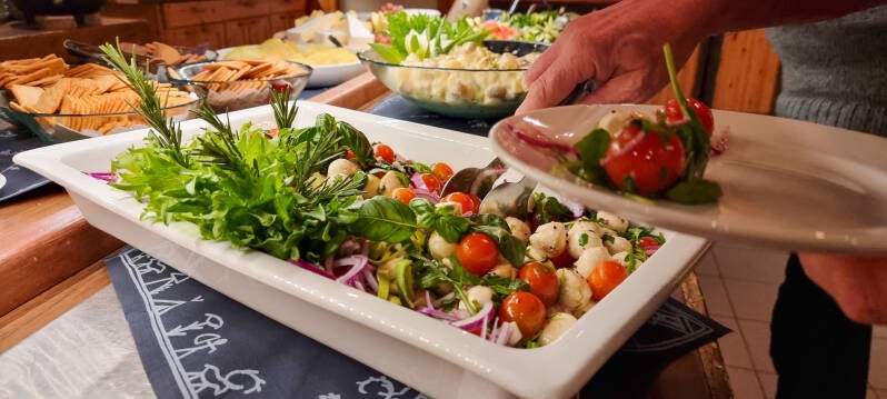 Wanneer we terug in Harriniva aangekomen zijn, kleden we ons om en begeven ons naar de bar, waar we blijven hangen tot aan het avondmaal om 6 uur. Daar krijgen we rendier op ons bord geserveerd, wie weet heeft dat nog één van onze sledes voortgetrokken vanmorgen...