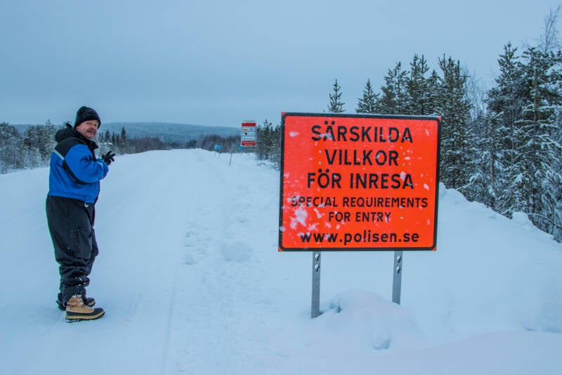 Vandaag hebben we een goed gevulde dag op het programma staan. Na het ontbijt trekken we onze warme kleding aan en doen we een wandeling naar Zweden. Dat klinkt veel straffer dan het in werkelijkheid is. Want om naar Zweden te gaan volgen we de Muonio-rivier een kilometertje richting het dorp. Daar bevindt zich een brug over de rivier die tevens ook de grens tussen Finland en Zweden is. We stappen een paar honderd meter Zweden binnen en dan keren we om. Uiteraard moeten er ook grensoverschrijdende foto's gemaakt worden, pal op de grens.