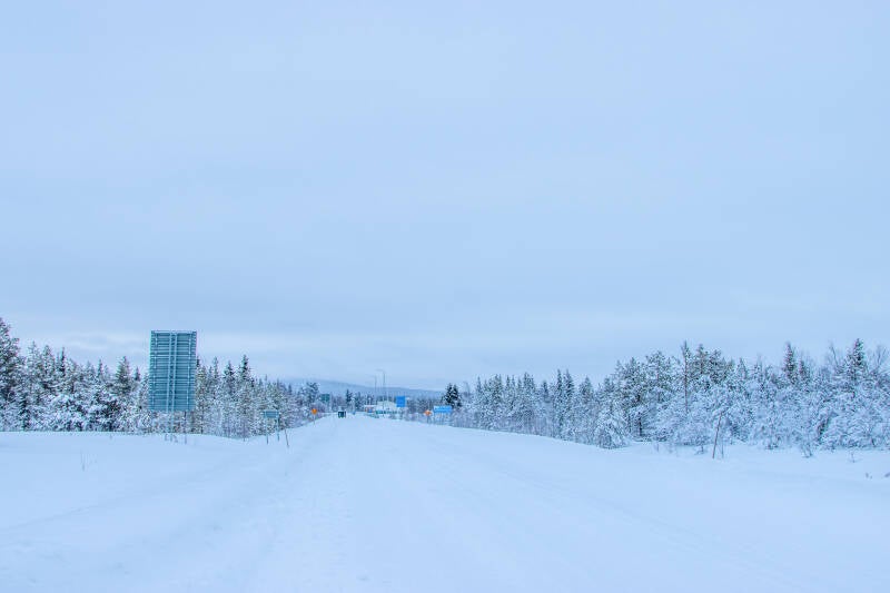 Onze vlucht vertrekt stipt om zeven uur, en 3 uur en een kwartier later staan we op de besneeuwde landingsbaan van Kitilla in Finland.