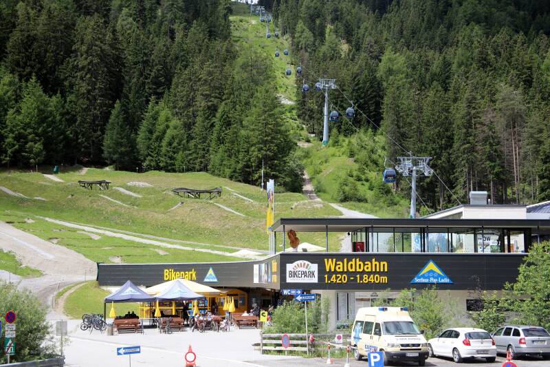 Dat bestaat ondertussen ook al een paar jaar, maar toen we hier voor het laatst waren (in 2014) was er behalve het grote waterbekken nog niet zo veel te zien. Met de Waldbahn trekken we vanuit Fiss naar het bergstation van de Sunliner. Die brengt ons dan weer naar beneden naar Serfaus, en daar nemen we dan vervolgens de Alpkopfbahn die ons ter plekke brengt.