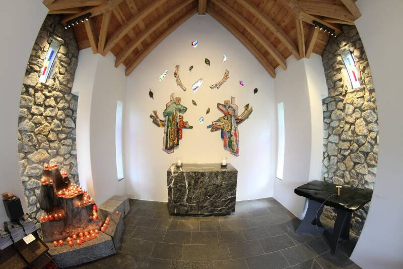 Voor wie tot bezinning wil komen is er aan de rand van het meer ook een klein kapelletje. Dat is binnenin heel sober uitgevoerd, maar wel heel mooi. Wie het wil kan er een kaarsje laten branden.