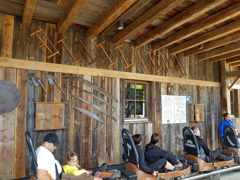 Serfaus heeft nu ook een eigen alpine-coaster, net zoals ze die in Fiss hebben. De naam van deze coaster is de Schneisenfeger en hij is prachtig gethematiseerd in het thema van de bosbouw en houtverwerking. Uiteraard hebben wie hier ook een ritje op gemaakt.