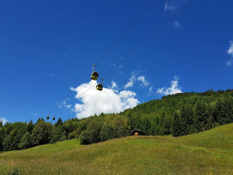 Omdat we pas tegen de middag naar boven gegaan zijn met de kabelbaan, moeten we de klok in de gaten houden. We moeten voor 16h30 terug aan het middenstation van de kabelbaan zijn. Anders moeten we helemaal te voet tot beneden in Fiss, en dat zou een beetje te veel van het goede zijn. Maar we arriveren een half uurtje voor sluitingstijd aan de kabelbaan, dus kunnen we naar beneden zeilen