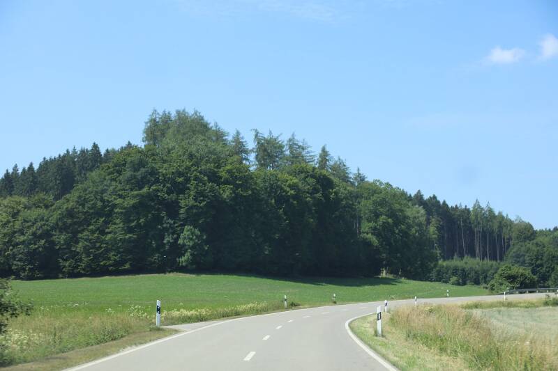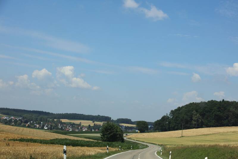 Na ons ontbijt bij Rosenberger zetten we koers richting Duitsland. Van zodra we over de grens zijn verschijnen er onheilspellende berichten op onze gps. We zouden 4 uur vertraging oplopen als we via de A7 naar Ulm zouden rijden. Dus nemen we maar de omleidingsroute die onze gps ons voorstelt. En die weg leidt ons door mooie dorpjes en landschappen.