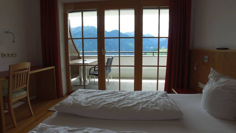 Het zwemwater van de Aqua-dome is zalig warm, op voorwaarde dat je in het juiste buitenbad stapt. Want er is een warm bad, en een iets minder warm bad. Het heeft ook iets, zo zwemmen met de prachtige bergwereld als achtergrond. We genieten er iedere keer opnieuw van.