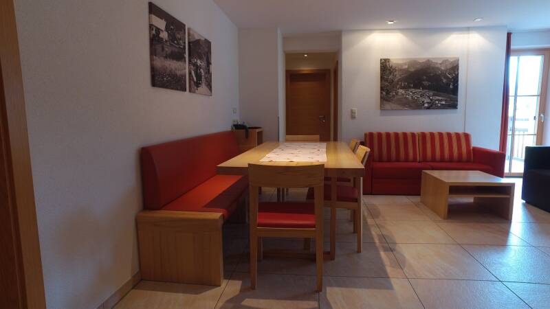 En dan mogen we in ons appartement. Dat kunnen het beste omschrijven als super formidabel fantastisch. Het is enorm ruim, het terras is heel groot en biedt een prachtig uitzicht over het hele Ober-Inn dal en de bergen van Fiss en Serfaus. Binnenin hebben we maar liefst drie badkamers, geen wachtrijen meer aan het toilet deze keer. En we hebben hier goeie WiFi !