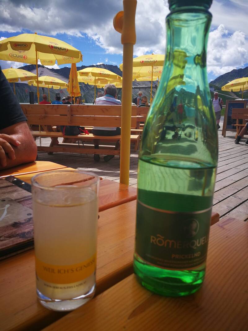 Omdat het al serieus warm begint te worden gaan we eerst iets drinken op het terras van het bergdiamant restaurant.