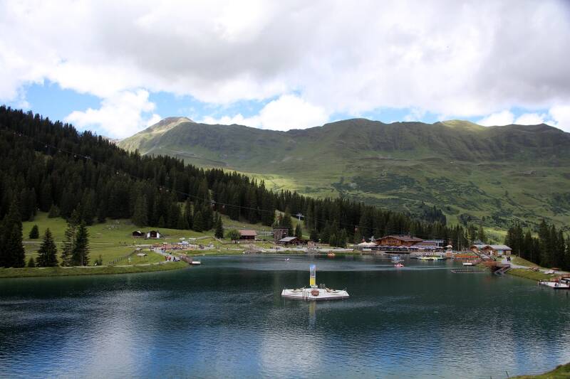 De Högsee is geen natuurlijk meer, het werd enkele jaren geleden aangelegd als waterbekken voor de sneeuwinstallaties voor de winter. Maar omdat het zomertoerisme tegenwoordig even belangrijk geworden is als de winter, hebben ze er hier in Serfaus iets moois van gemaakt. Er staat een groot restaurant waar je iets kan drinken en lekker kan eten. En op en rond het meer is er allerlei recreatie voorzien.