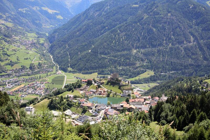 Als we over de Arlbergpas heen zijn, zijn we in Tirol. Het weer is hier trouwens beter dan in Vorarlberg. De zon doet flink haar best om de wolken weg te jagen. Wie ook flink zijn best doet is de oostenrijkse Polizei. Die doen namelijk een snelheidscontrole in Prutz, en ja hoor, blijkbaar reden we ook te snel. We reden 73 waar maar 60 per uur was toegelaten. We rijden eigenlijk nooit te snel, maar het bord met 60 per uur stond wel heel kort na dat van 80 per uur, waardoor we nog aan het vertragen waren. Maar ja, voor het prettarief van 35 euro gaan we niet discussiëren, dus betalen we netjes onze boete. Bekijk het maar als onze bijdrage aan het jarenlange gebruik van de Tiroolse wegen.