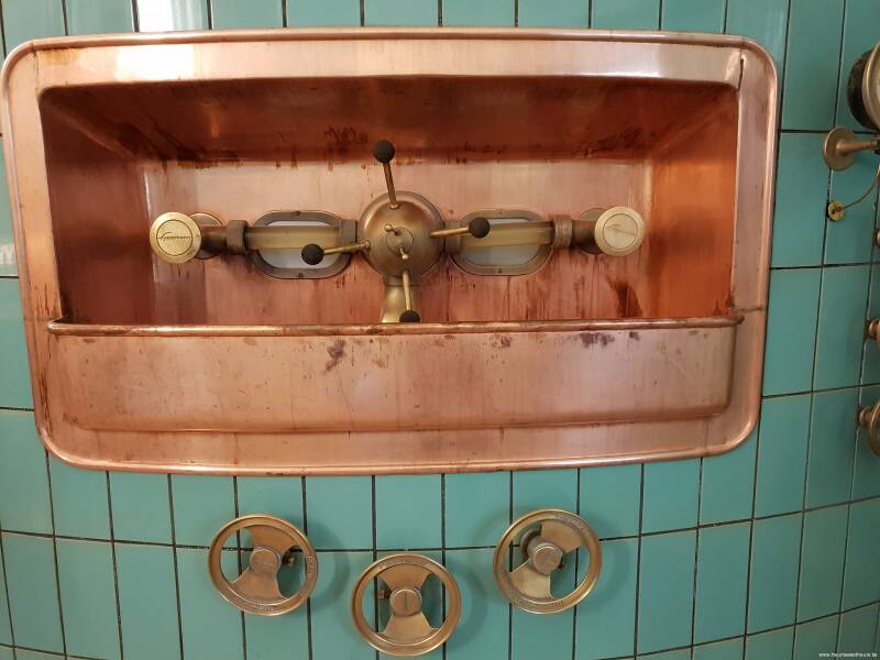 De brouwerij is niet zomaar een fabrieksgebouw, ze bevindt zich deels in een kasteel, vandaar dat men dit ook een kasteelbrouwerij noemt. We volgen de groene wegwijzers die ons door het gebouw loodsen. Daarbij komen we in een badzaal. Ja, u leest het goed, een badzaal. Niet voor het personeel, maar voor bezoekers. Wie het wil kan hier, na afspraak een bierbad komen nemen. Er is een mooi vormgegeven zaal waar je tot met 4 personen in een grote kuip gevuld met 12000 liter water en 300 liter bier. Naar het schijnt heeft het bier een heilzame werking. Kopje ondergaan in bad was nog nooit zo leuk. De bierbaden bij Starkenberger waren trouwens de allereerste baden van deze soort ter wereld. En ze zijn dus nog altijd in gebruik.