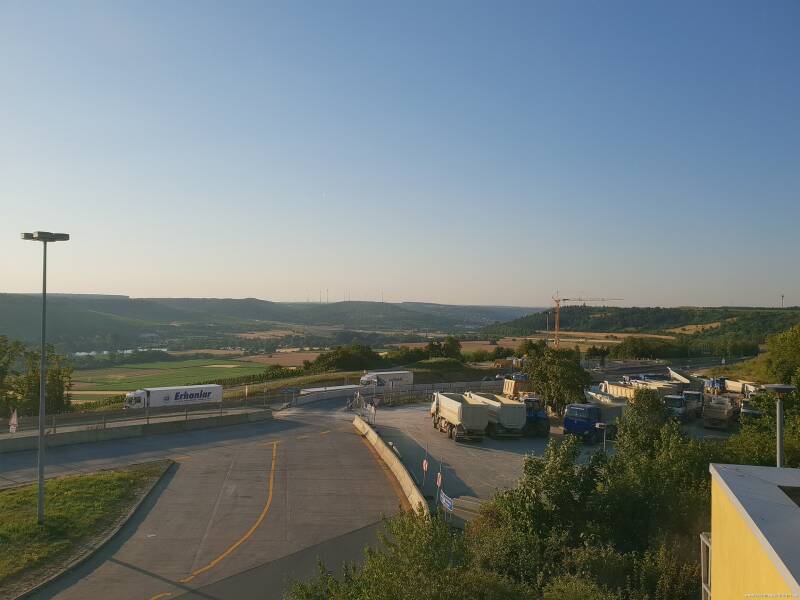 Behalve veel Belgen zijn er ook opvallend veel Engelsen onderweg, en vaak ook nog eens met een aanhangwagen met een boot er op. We vragen ons af waar die naartoe trekken. We hebben ondertussen ook al een aantal bouwwerven op de Autobahn mogen verwerken. Tot nu toe ging dat zonder noemenswaardige vertraging. Als we in Wûrzburg naderen is het tijd voor een sanitaire stop. Een koffietje kan er ook al in, de zon is ondertussen al opgekomen. Carine heeft ondertussen ontdekt dat onze auto een alarmsysteem heeft. Dat deed ze samen met de rest van de parking…
