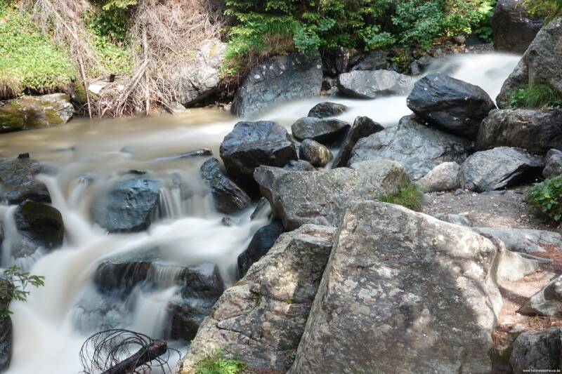 De zon is ondertussen ook weer flink haar best aan het doen. Het weerbericht voorspelde nochtans niet veel goed voor vandaag, maar het tegengestelde is waar. Na een paar honderd meter dalen staan we beneden in de Arzler Pitzeklamm.
