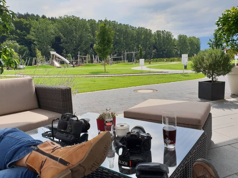 Volgens ons gaat het niet zo’n vaart lopen. We zijn hier tenslotte op het zonne-terras van Oostenrijk. En ook al is die zon niet echt prominent aanwezig, het is wel droog. Dus trekken we er op uit voor een wandeling, met de regenkledij in de rugzak.