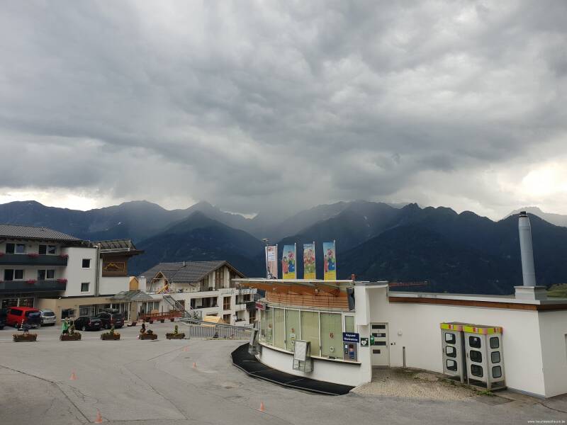 Het is nog altijd droog als we aan de Sonnenbahn aankomen. Ook tijdens de rit naar Fiss blijft het droog. We moeten enkel nog proberen om vanaf het dalstation van de Sonnenbahn droog aan ons appartement te geraken.