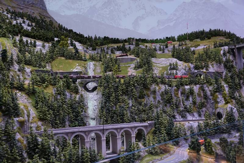 Waar we in het bijzonder voor naar hier gekomen zijn is de meer dan 500 vierkante meter grote modeltreinbaan.