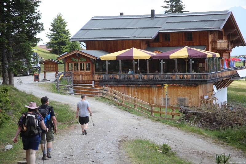 Na onze uitvoering van het ritueel trekken we verder. Onze volgende stop wordt de Hög Alm, waar we ons vochtgehalte terug op peil gaan brengen. Er is dan misschien wel regen voorspeld, maar daar is op dit moment weinig van te merken.