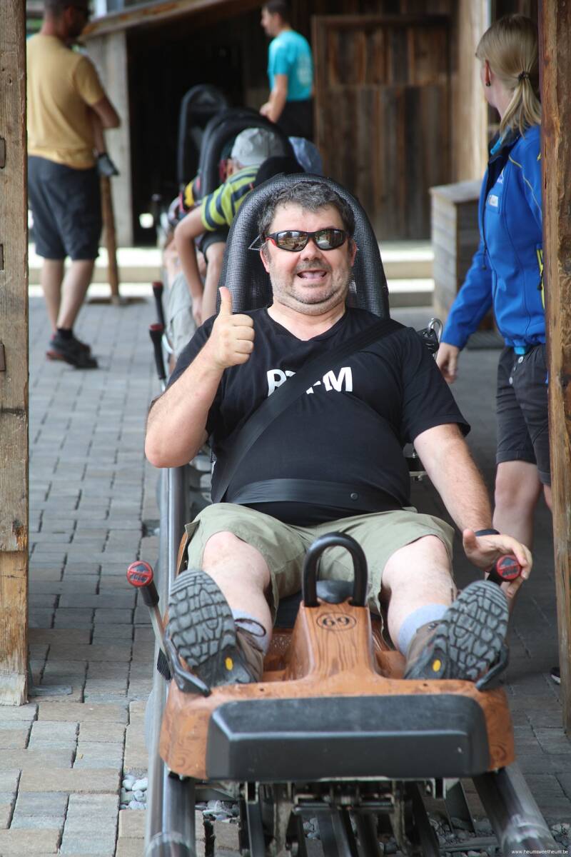 In onze herinnering was het nog een eindje stappen van de Hög Alm tot aan de Hög See. Maar ofwel heeft men deze twee naar elkaar toegeschoven, ofwel hadden we de afstand schromelijk overschat. Want je kan van aan de voordeur van de Hög Alm de Hög See al zien. Hier gaan we, net zoals in Fiss een ritje doen op de coaster die zich hier bevindt. In Fiss is dat de Fisser Flitser, hier in Serfaus is dat de Schneisenfeger, een mooie gethematiseerde baan. Ook hier zet Chelsea onze 360 graden video helm weer op haar hoofd om de rit vast te leggen voor het nageslacht. De beelden van deze rit plaatsen we binnen een paar weken online. Maar we kunnen zeggen dat ze vrij spectaculair zijn !