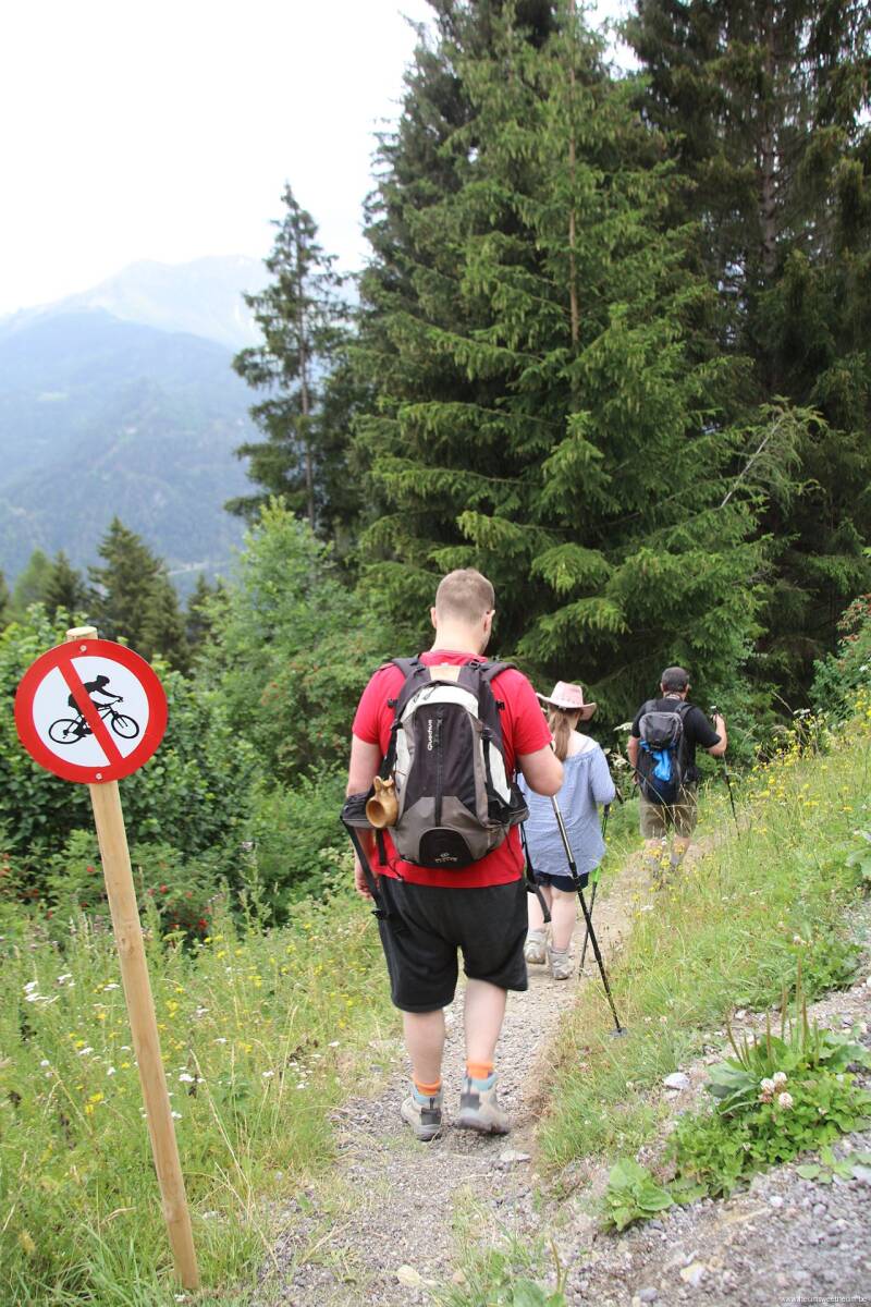 Na het ijs is het tijd voor het laatste stuk van onze wandeling. We moeten nog naar beneden in Ladis om daar dan vervolgens met de Sonnenbahn terug naar Fiss te zweven. De wolken beginnen er al wat dreigender uit te zien. De vraag is of we nog voor de zondvloed terug aan ons appartement in Fiss gaan aankomen.